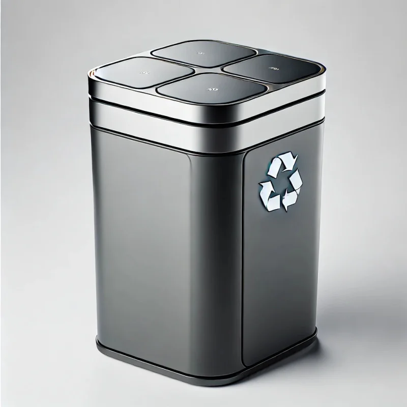 Nowoczesny kosz na śmieci z funkcją segregacji. Wykonany z trwałych materiałów, wyposażony w wygodny system otwierania. Idealny do kuchni lub biura.